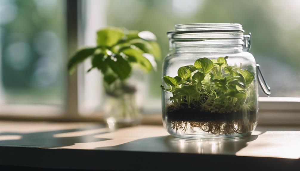 Cut 4-6 inch stem cuttings from a mother plant, remove lower leaves, and place the cut end in the water, securing it with a toothpick if needed. Provide bright, indirect light and maintain a consistent temperature between 65-75°F. Change the water every 1-2 weeks to prevent stagnation. As you progress, you'll discover the secrets to thriving, fragrant peppermint plants.